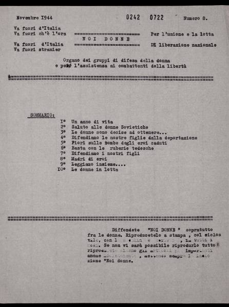 Elenco pubblicazioni della rivista Noi Donne del 1944
