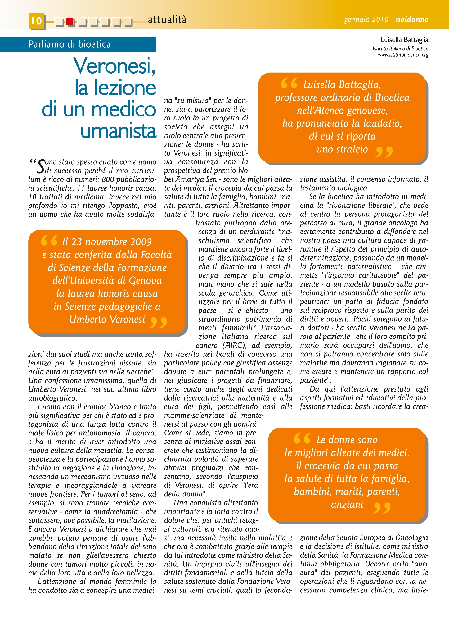 ri dottori - ha scritto Veronesi ne La pa-