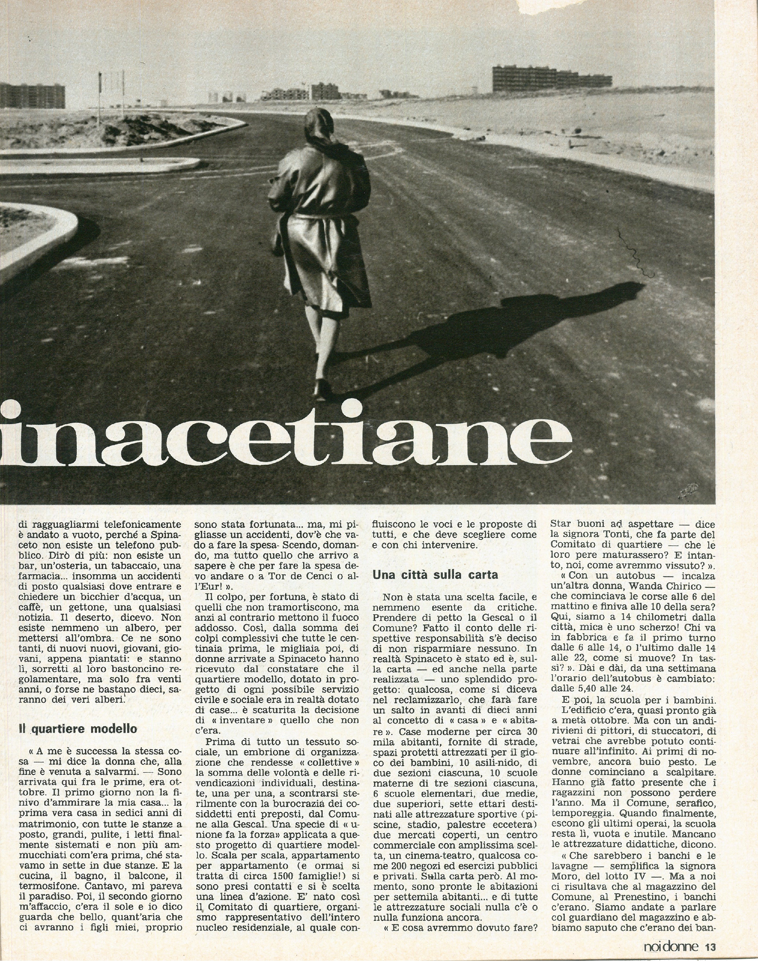 Cronaca e inchieste. Le spinacetiane. chi sono e cosa vogliono le donne di Spinaceto il nuovo quartiere alle porte di Roma. Le donne si sono riunite in assemblea per essere protagoniste dello sviluppo del nuovo insediamento che al momento è carente di ogni servizio. Il servizio di Bruna Bellonzi.