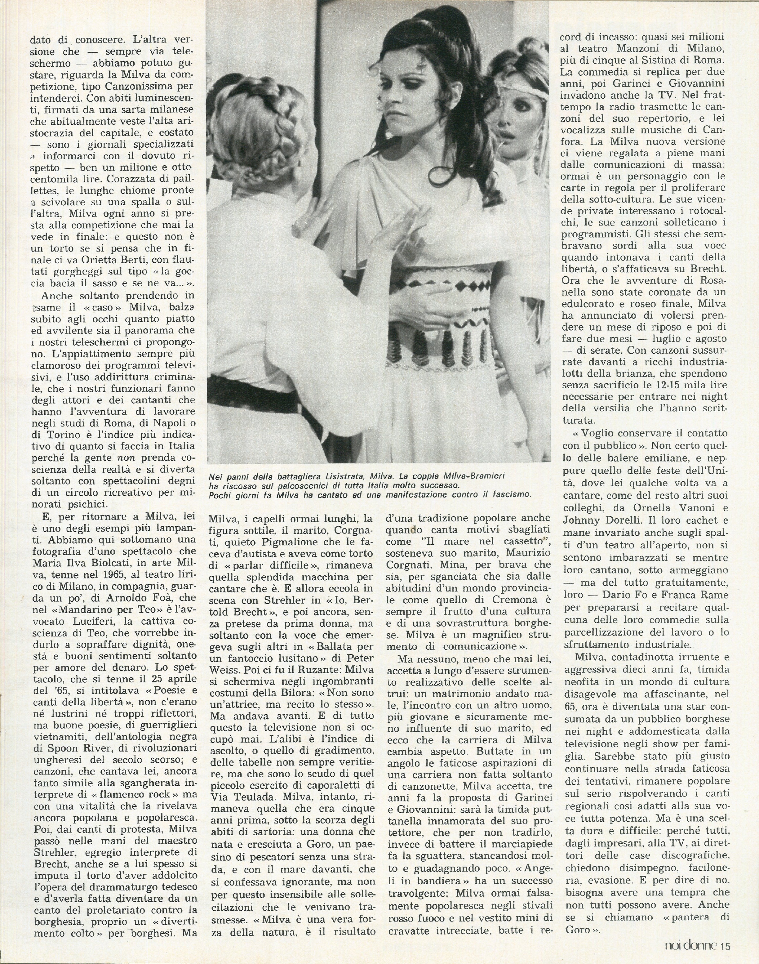 “La pantera rosa”: Milva mette momentaneamente da parte la sua carriera da cantante per concentrarsi sul mestiere dell’attrice, interpretando il personaggio di Rosanella nel film per la televisione “Un mandarino per Teo”. Articolo di Patrizia Carrano.