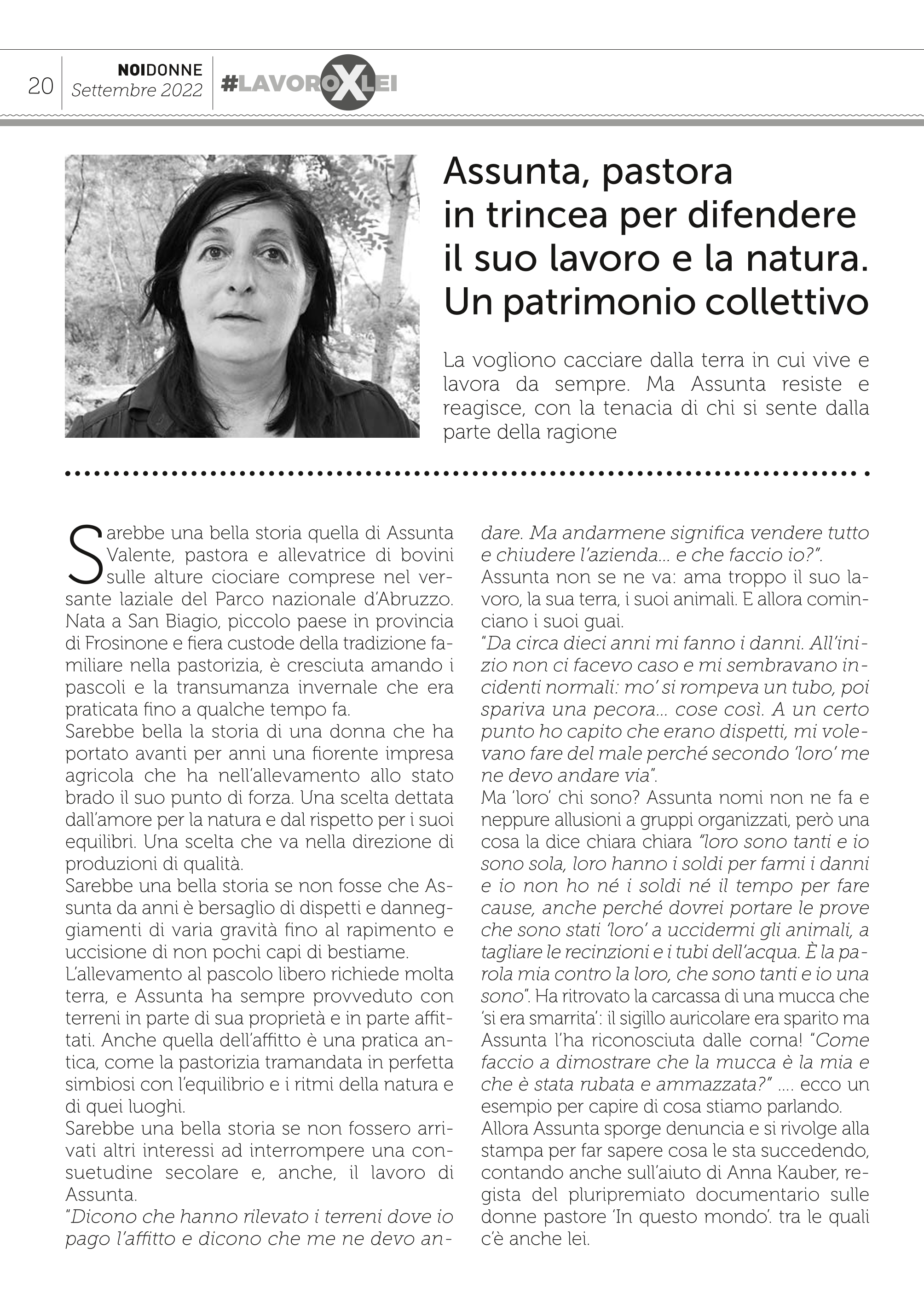 Sarebbe una bella storia quella di Assunta Valente, pastora e allevatrice di bovini sulle alture ciociare comprese nel versante laziale del Parco nazionale d’Abruzzo. Nata a San Biagio, piccolo paese in provincia di Frosinone e fiera custode della tradizione familiare nella pastorizia, è cresciuta amando i pascoli e la transumanza invernale che era praticata fino a qualche tempo fa.