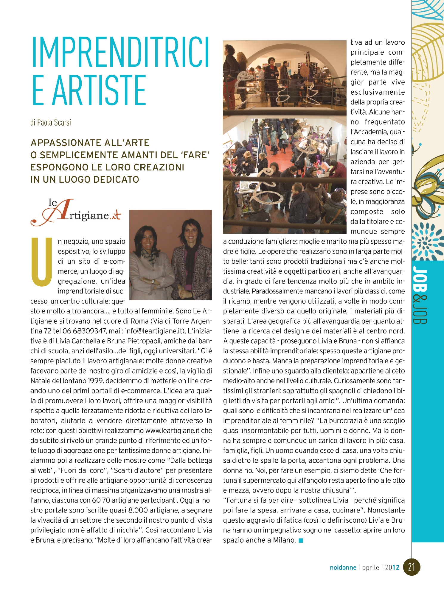 tina 72 teI 06 68309347, mail: info®leartigiane.it). L'inizia-