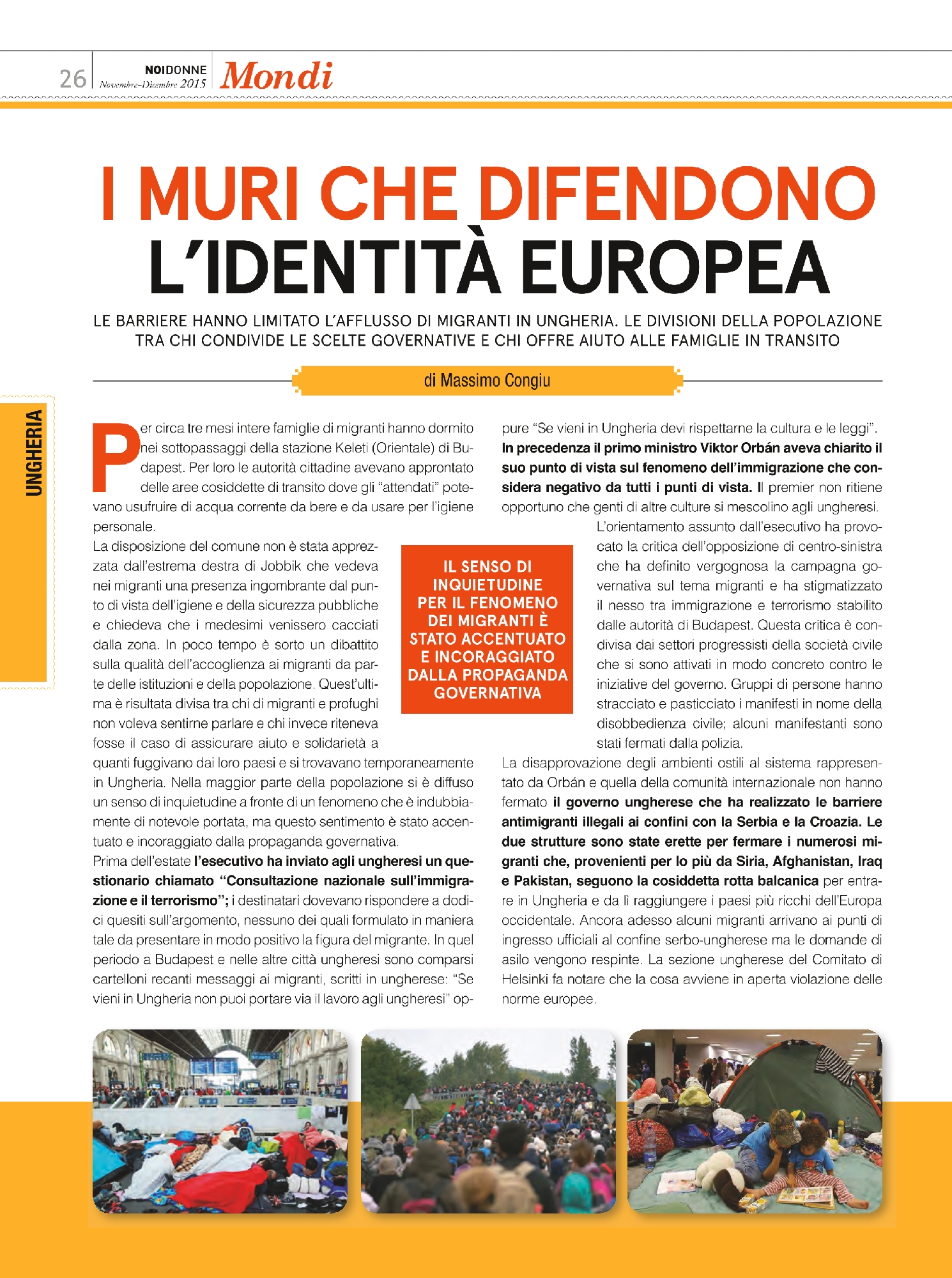 Per circa tre mesi intere famiglie di migranti hanno dormito nei sottopassaggi della stazione Keleti (Orientale) di Bu-dapest. Per loro le autorità cittadine avevano approntato delle aree cosiddette di transito dove gli “attendati” pote-
