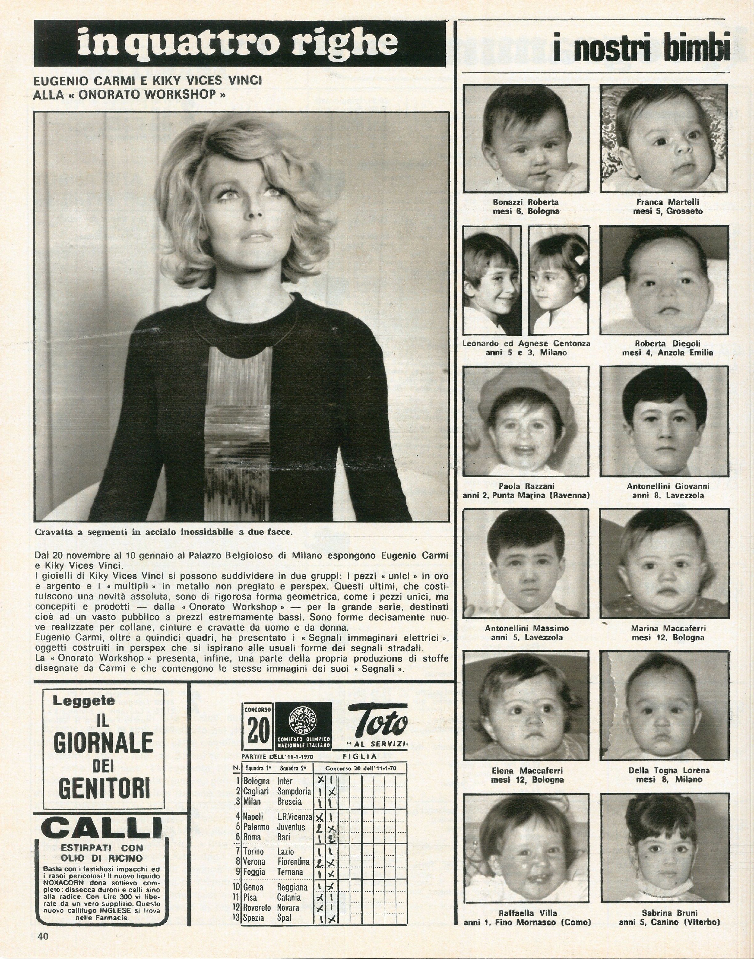 Visto letto ascoltato per voi a cura di Ivana Musiani: cinema (“Agente 007 al servizio segreto di sua maestà” ; “Il gatto con gli stivali” cartone animato ; Alberto Sordi in “Il prof dott Guido Tersilli…”; Luigi Comencini regista di ‘Senza sapere niente di lei’ con Paola Pitagora) libri (L’America in tanti libri); dischi (I Pooh in Giappone; il libro-disco di Tina Franchini e Fiorella Ferrazza ‘Come nascono i bambini’ con la filastrocca di Rodari-Margot) e il 45 giri di Bon Dylan ‘di consumo’ e non impegnato ‘Lay lady day’.