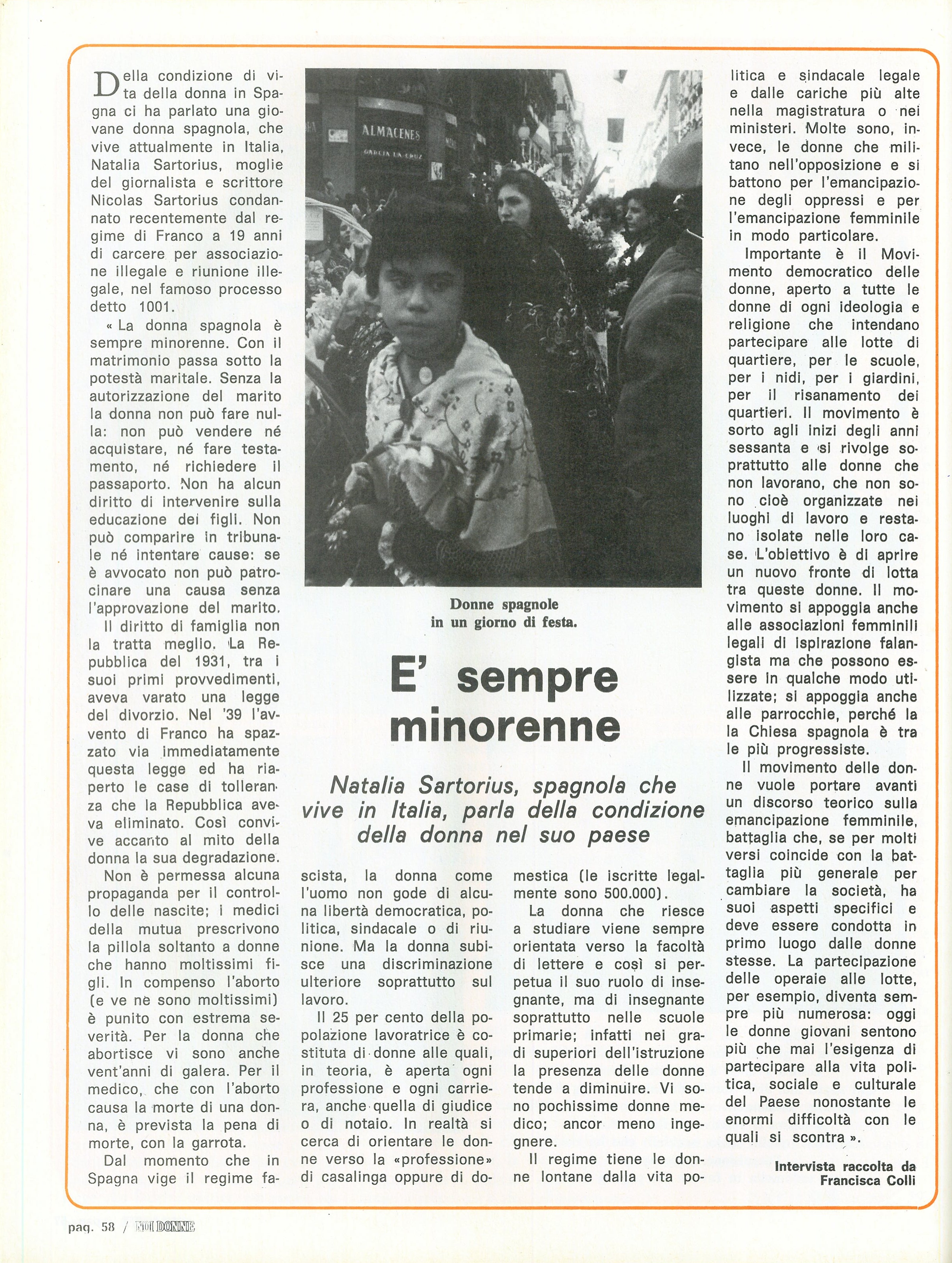 “E’ sempre minorenne”: la testimonianza di Natalia Sartorius, spagnola che vive in Italia, sulla condizione femminile nel paese d’origine. A cura di Francisca Colli.